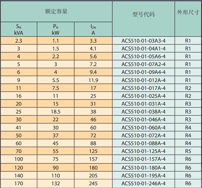 左邊是一瓶統(tǒng)一綠茶,對(duì)比之下R1,R2,R3,R4尺寸的大小示意圖 Rx分別代表ACS510系列的6種尺寸產(chǎn)品,體積越大,功率越大,價(jià)格也越貴。如有不懂也可撥打18072969800向我們咨詢。
